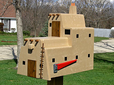 Front of structure drops to expose the mailbox. Lots of detail including windows, door and ladder. Heavy duty pine construction with a standard metal mailbox inside.